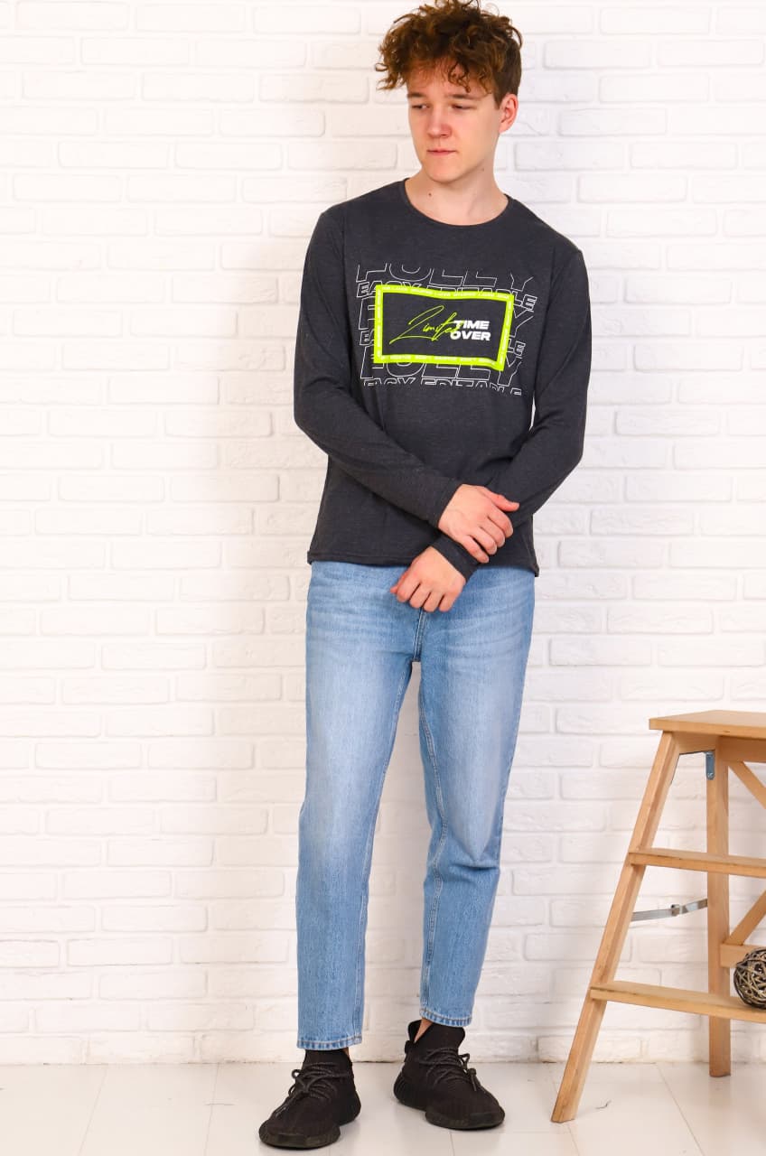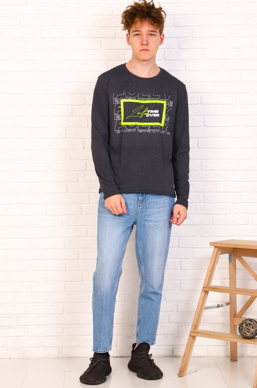 Мужской лонгслив - хлопковая футболка с длинным рукавом - идеальный вариант на прохладную погоду. Стильный печатный принт на полочке.