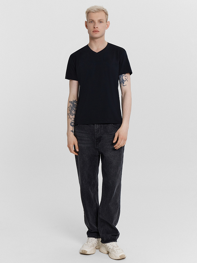 Футболка из трикотажной кулирки прямого силуэта. Длина до середины бедра. Горловина с V-образным вырезом. Рукава короткие. Отличный выбор!