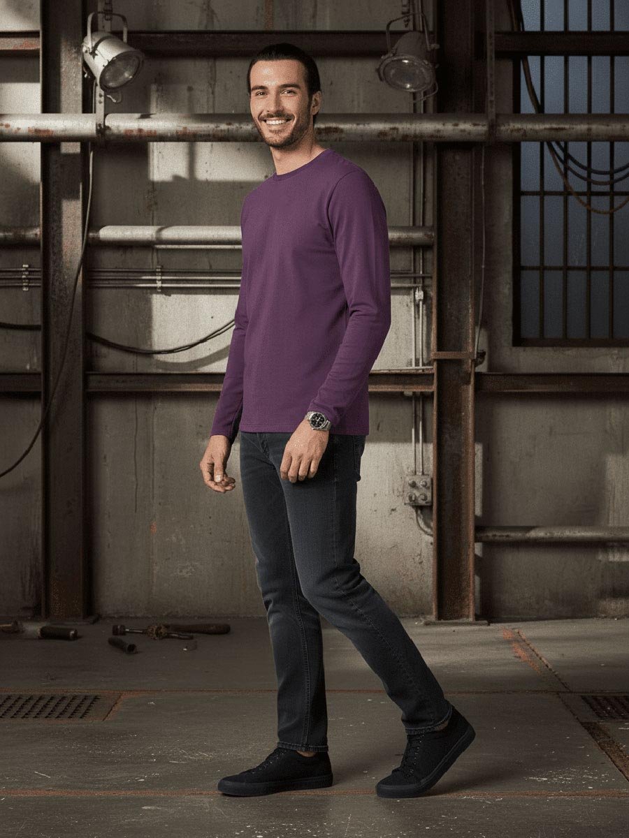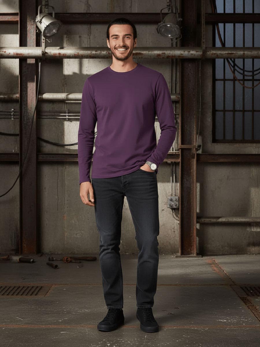 Мужская футболка F5, Regular fit (полуприлегающий силуэт), круглый вырез горловины, длинный рукав. Выполнена из классического трикотажного полотна. 95%Хлопок, 5%Лайкра