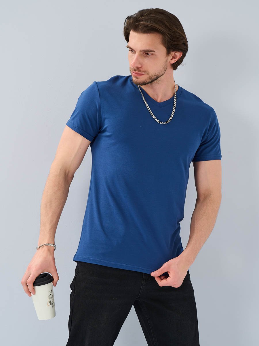 Мужская футболка F5, Slim fit (прилегающий силуэт), V-образный вырез горловины, короткий рукав. Выполнена из  трикотажного полотна стрейч. 92%Хлопок, 8%Эластан