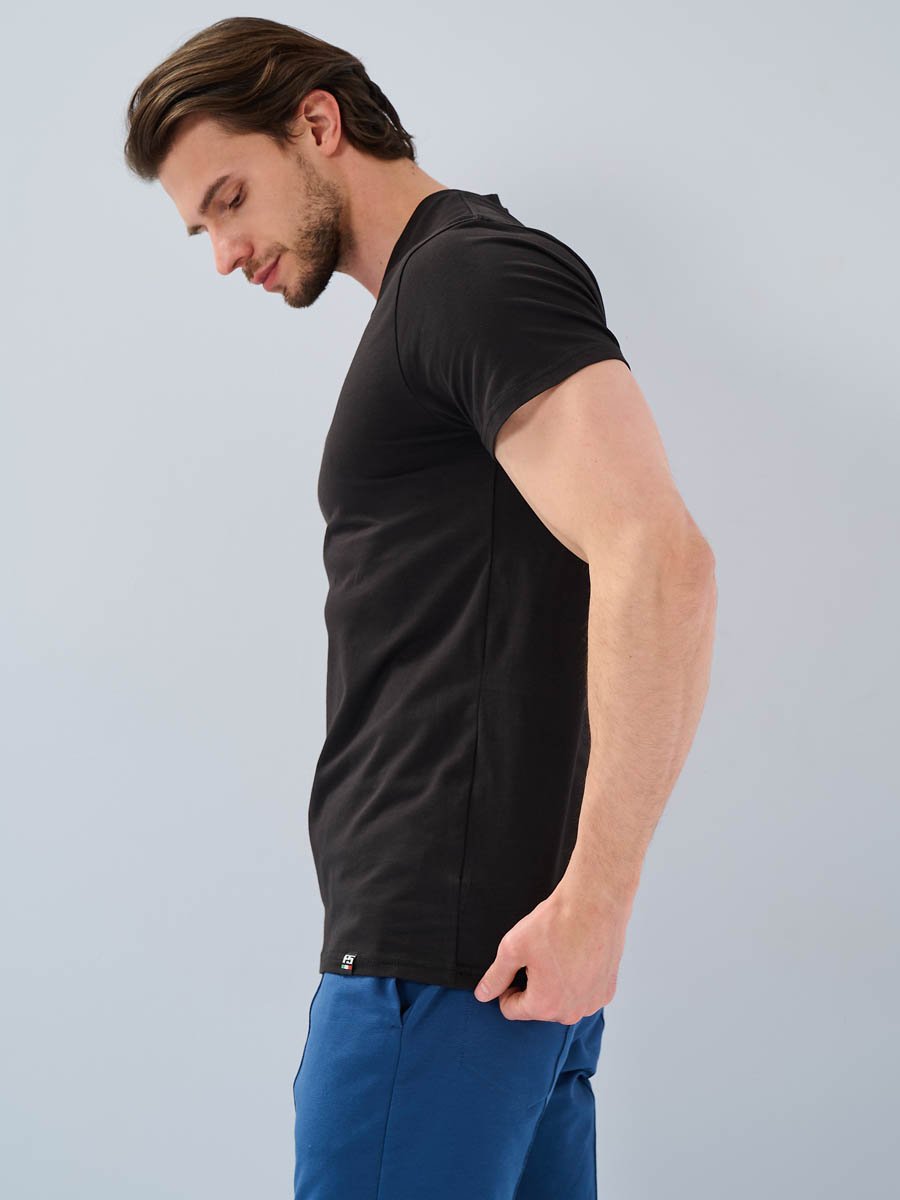 Мужская футболка F5, Slim fit (прилегающий силуэт), V-образный вырез горловины, короткий рукав. Выполнена из  трикотажного полотна стрейч. 92%Хлопок, 8%Эластан