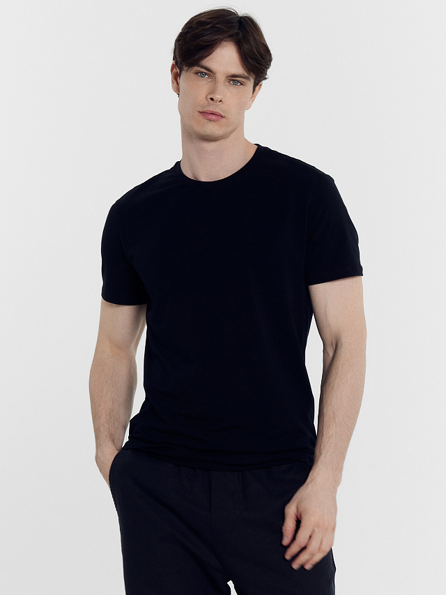 Стильная футболка из трикотажной кулирки полуприлегающего силуэта. Длина до середины бедер. Горловина круглая. Рукава короткие. Универсальная модель!