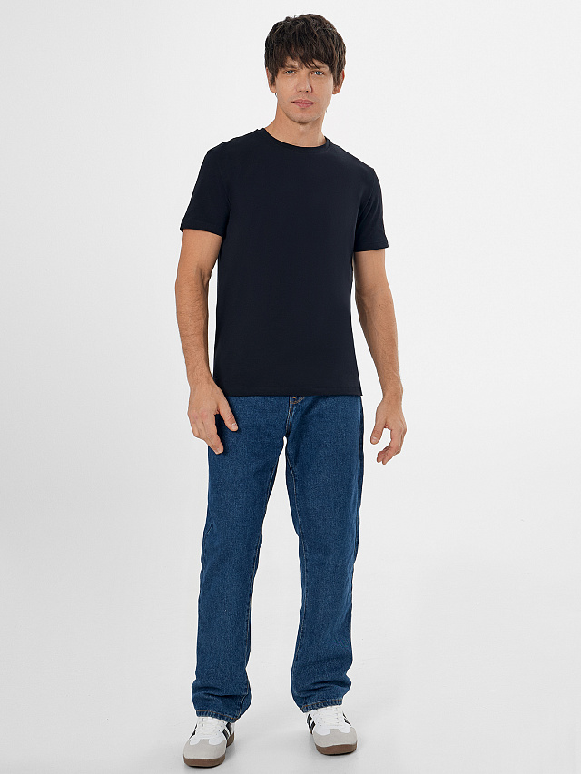 Черная мужская базовая футболка — это универсальная модель прямого кроя для повседневной носки. Она выполнена из хлопка с добавлением эластана, который обеспечивает мягкость, эластичность и комфортное прилегание.