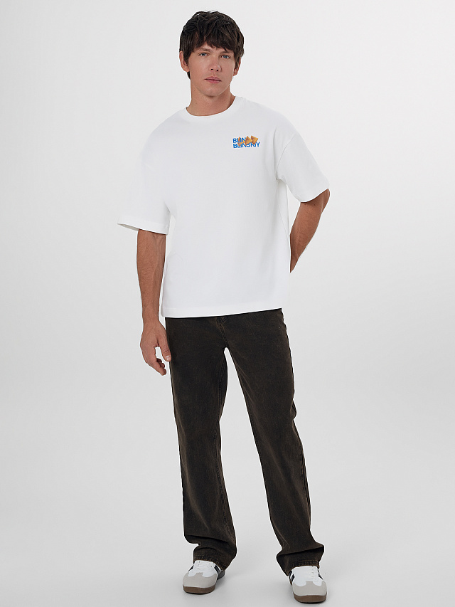 Состав из хлопка гарантирует гипоаллергенность, мягкость и простоту в уходе, сохраняя форму и яркость рисунка после стирок. Эта футболка станет отличным выбором для повседневной носки или тематических встреч, легко сочетаясь с джинсами, шортами и брюками.