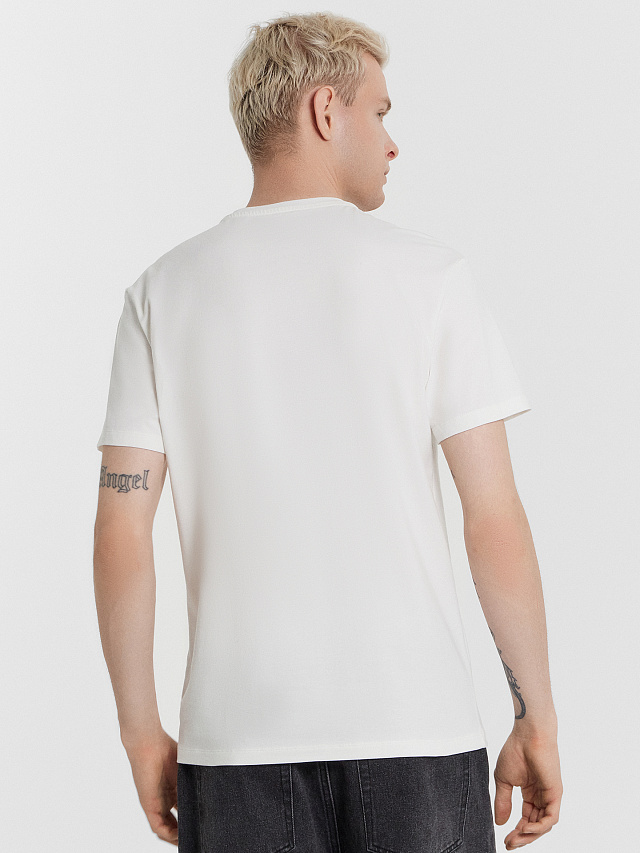 Эта стильная мужская футболка — идеальный вариант для повседневного гардероба. Модель полуприлегающего силуэта создает комфортную посадку, подчеркивая фигуру, но не сковывая движения. Оптимальная длина до середины бедра делает ее универсальной и удобной. Классическая круглая горловина и короткие рукава обеспечивают лаконичный и современный образ. Футболка выполнена из натуральной хлопковой кулирки — мягкого, дышащего материала, который приятно ощущается на коже и отлично пропускает воздух. Эта универсальная модель легко сочетается с любыми элементами гардероба, будь то джинсы, спортивные брюки или шорты. Подойдет для активного отдыха, прогулок и повседневных образов, делая стиль простым и практичным. Незаменимый вариант на каждый день!