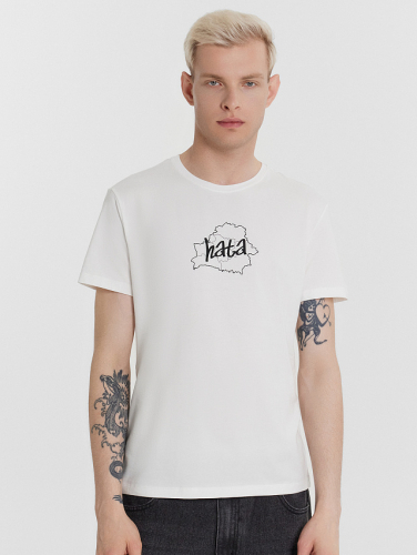 Футболка мужская белая с принтом и надписью "Ад прадзедаў спакон вякоў мне засталася спадчына"