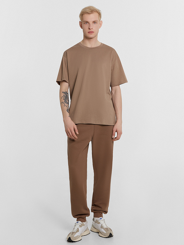 Мужская однотонная футболка — удачное вложение в ваш базовый гардероб. Модель свободного силуэта с круглой горловиной и спущенным плечом создаёт стильный и современный образ. Углублённая пройма и рукава длиной чуть выше локтя обеспечивают комфорт и свободу движений. Изделие выполнено из хлопковой кулирки, что делает футболку мягкой, приятной на ощупь и отлично пропускающей воздух. Эта футболка идеально подходит для повседневной носки, обеспечивая комфорт и стиль в любой ситуации.