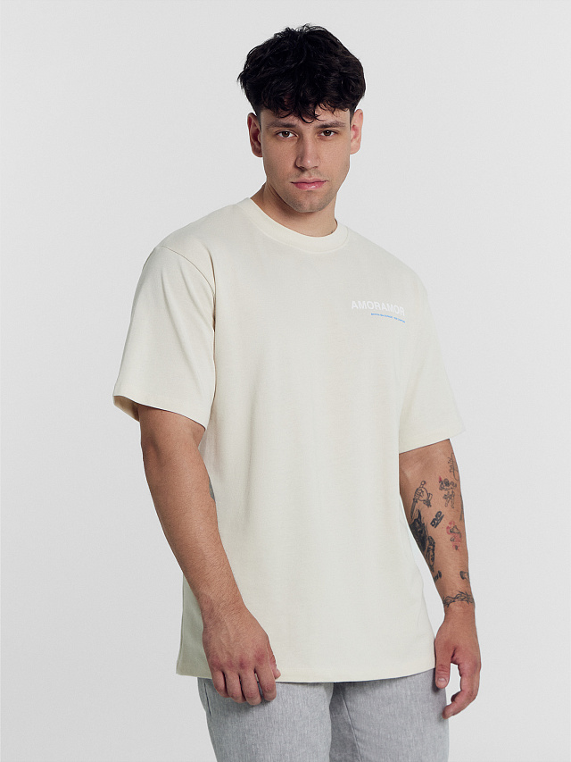 Футболка мужская бежевая с печатью
