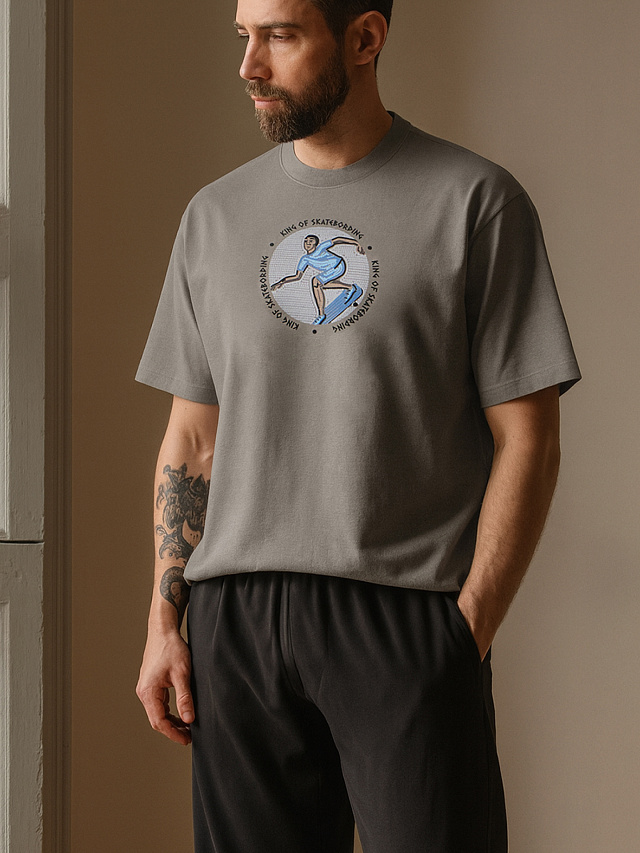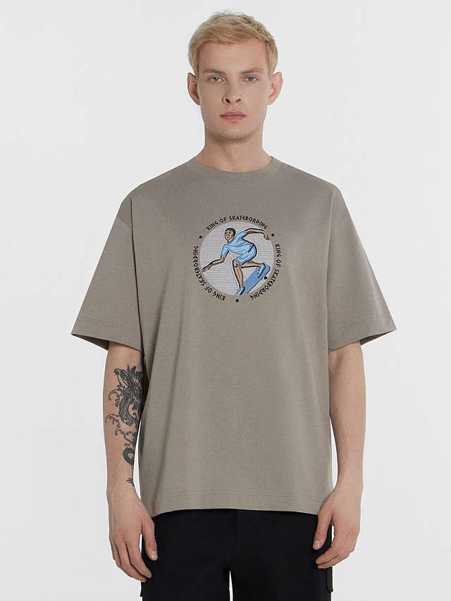 Футболка мужская бежевая с принтом и надписью "King of skatedording"
