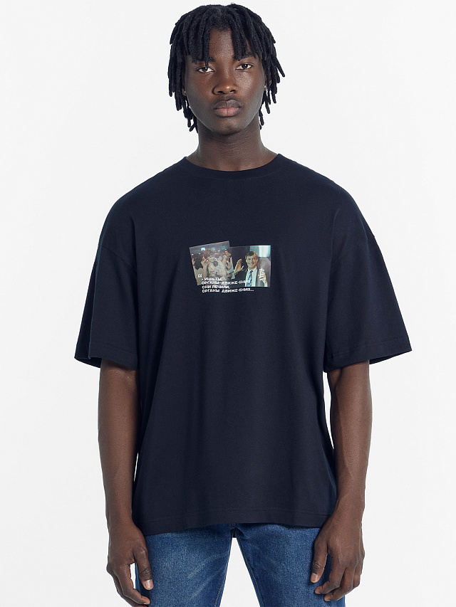 Стильная мужская футболка в однотонной расцветке с принтом в виде сцены из фильма "Любовь и голуби" в виде надписи "- Ишь ты, органы движе-ения они лечили, органы движе-ения!". Модель полностью состоит из натурального хлопка. Изделие свободного силуэта со слегка спущенным плечом, длиной до линии бедер. Горловина круглой формы, рукава короткие. Отличный вариант для повседневной носки, спорта и активного отдыха. В линейке широкий размерный и цветовой ряд. Рекомендуем!