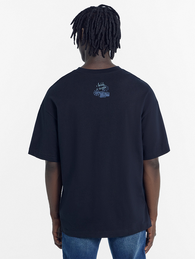 Футболка мужская черная с принтом в виде кадра из фильма "Любовь и голуби"