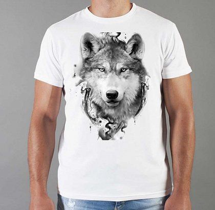 Футболка мужская с принтом белая "Волк 3"