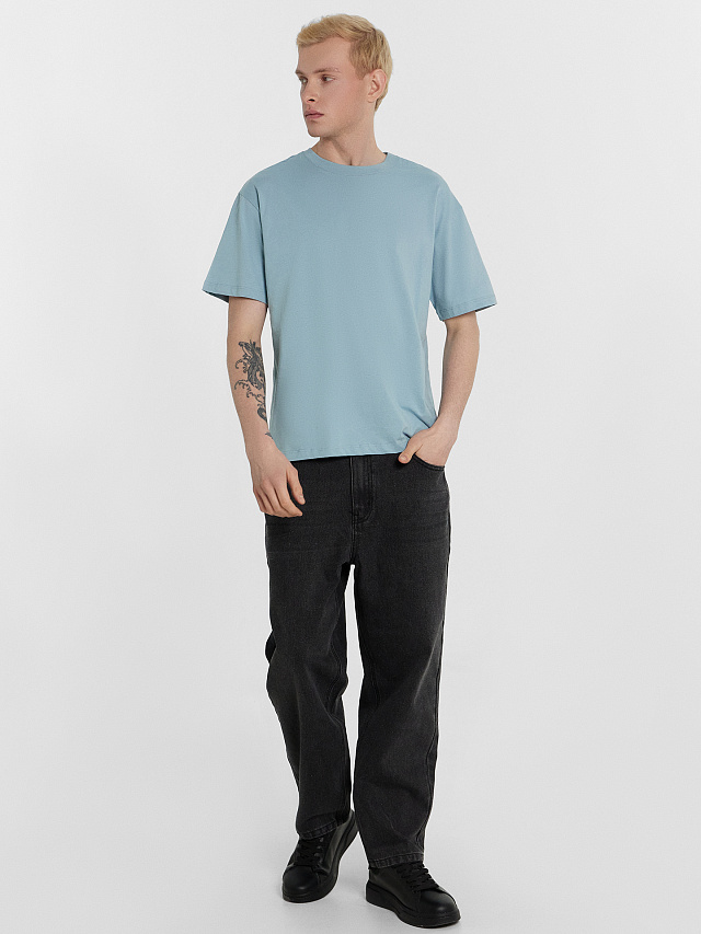 Мужская однотонная футболка — удачное вложение в ваш базовый гардероб. Модель свободного силуэта с круглой горловиной и спущенным плечом создаёт стильный и современный образ. Углублённая пройма и рукава длиной чуть выше локтя обеспечивают комфорт и свободу движений. Изделие выполнено из хлопковой кулирки, что делает футболку мягкой, приятной на ощупь и отлично пропускающей воздух. Эта футболка идеально подходит для повседневной носки, обеспечивая комфорт и стиль в любой ситуации.