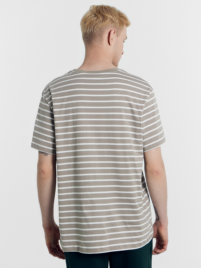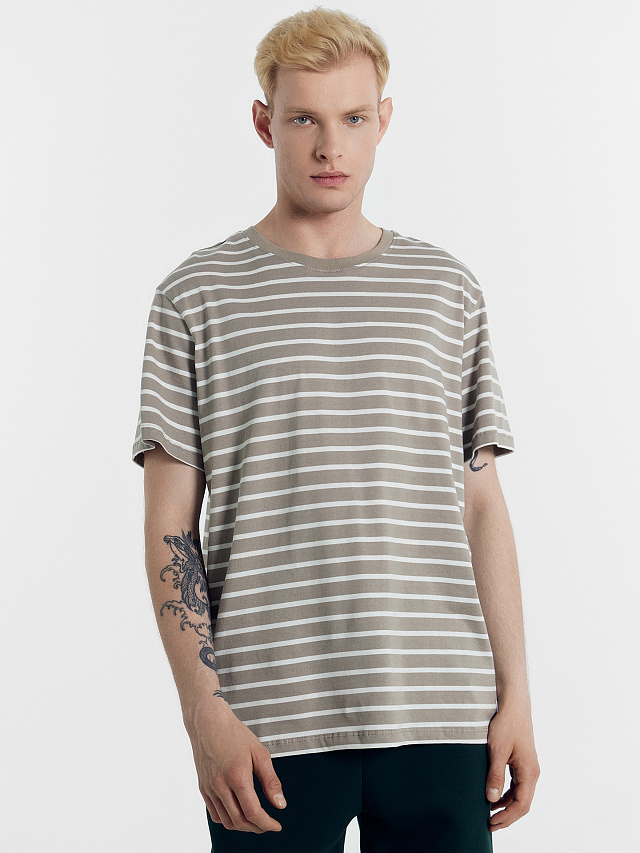 Футболка мужская кофейно-бежевая в белую полоску