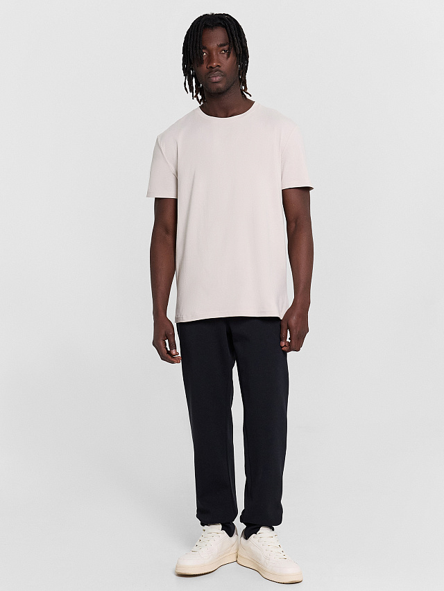 Мужская однотонная футболка — удобный и универсальный базовый элемент гардероба! Прямой крой обеспечивает свободную посадку, гарантируя комфорт в течение дня. Круглая горловина придает классический вид, а короткие рукава делают модель практичной для повседневной носки. Низ изделия и рукавов обработан швом вподгибку, что обеспечивает аккуратность и долговечность. Изготовленная из хлопка с добавлением эластичных волокон, футболка мягкая, воздухопроницаемая и хорошо держит форму, оставаясь удобной даже после множества стирок. Отличный выбор для повседневного гардероба!