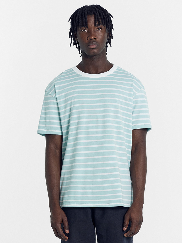 Футболка мужская пыльно-бирюзовая в белую полоску