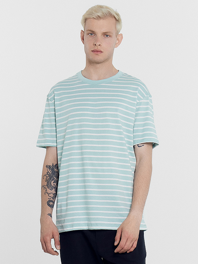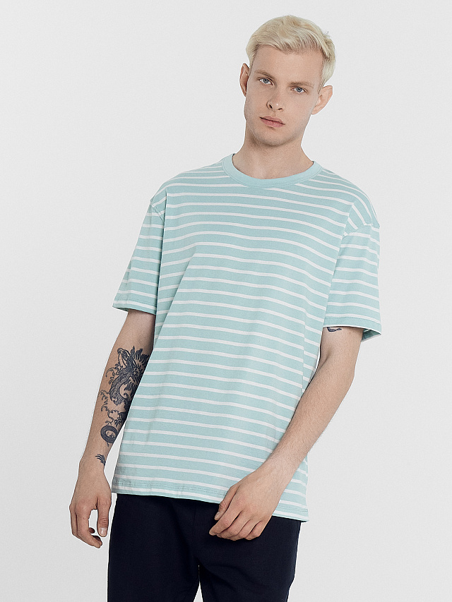 Футболка мужская пыльно-бирюзовая в белую полоску