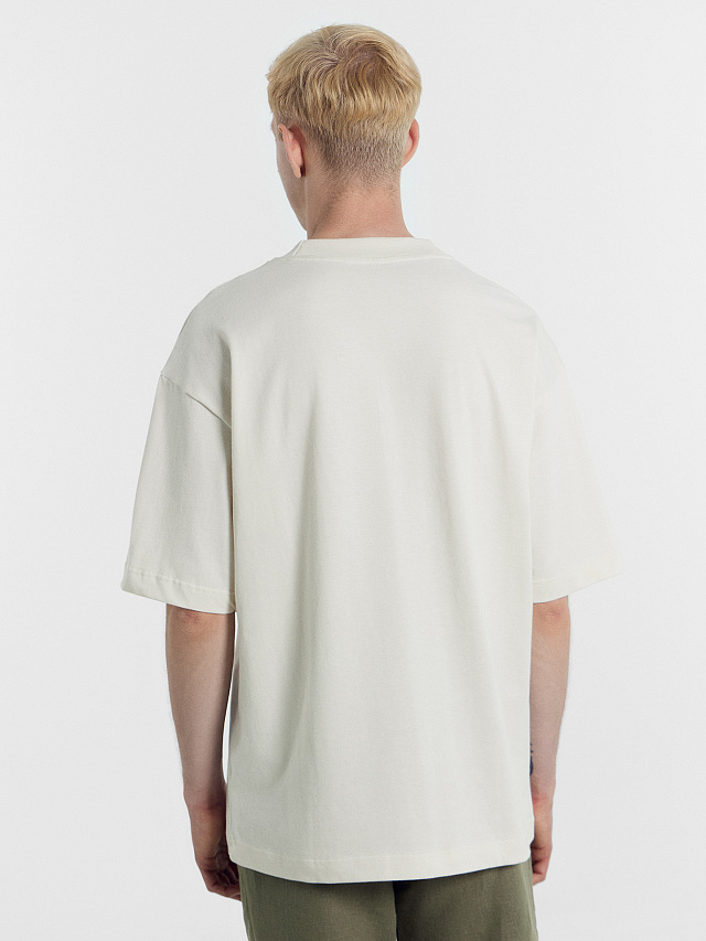 Свободная футболка мужская из 100% хлопка с печатью в виде цитаты из книги «Любовь во время чумы» Габриэля Гарсиа Маркеса — «Улыбайся, не доставляй беде удовольствия.». Горловина круглой формы из рибаны, рукава короткие, линия плеча спущена. Оптимальна для носки в любое время года. Универсальная и прекрасно сочетается со многими вещами в гардеробе. Отличный вариант для создания оригинальных повседневных образов. Дополнить можно стильным низом из базовой коллекции для мужчин.
