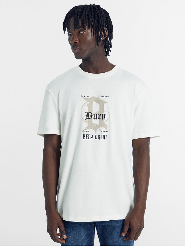 Футболка мужская светло-молочная с печатью