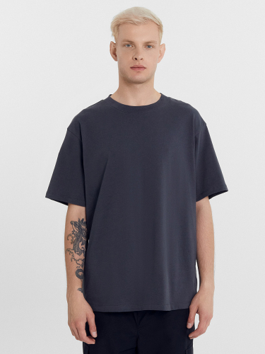 Футболка свободная, оверсайз.Горловина округлой формы обработана обтачкой из рибаны. Шов втачивания обтачки по спинке закрыт тесьмой хб.
