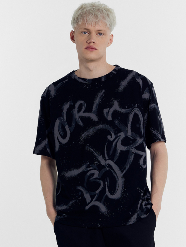 Футболка выполнена из хлопка. Этот материал дышащий, приятный к коже и идеально сочетается с техникой кислотной стирки, подчеркивая её текстуру.