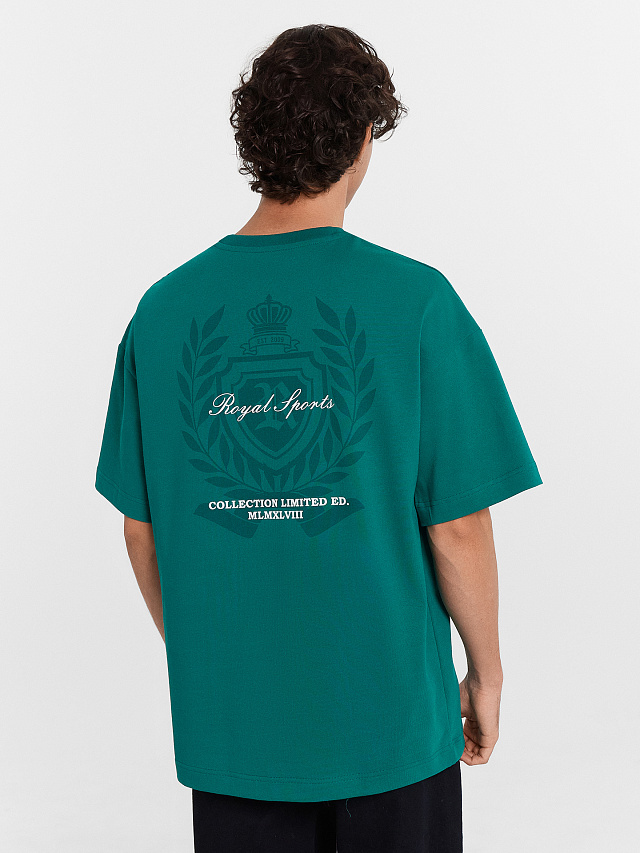 Футболка мужская зеленая с принтом и надписью "Royal sports"