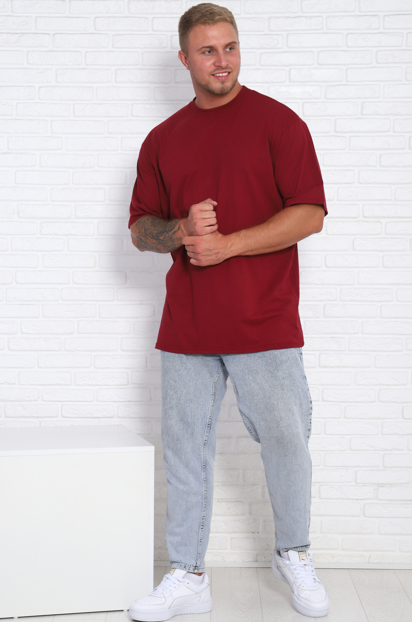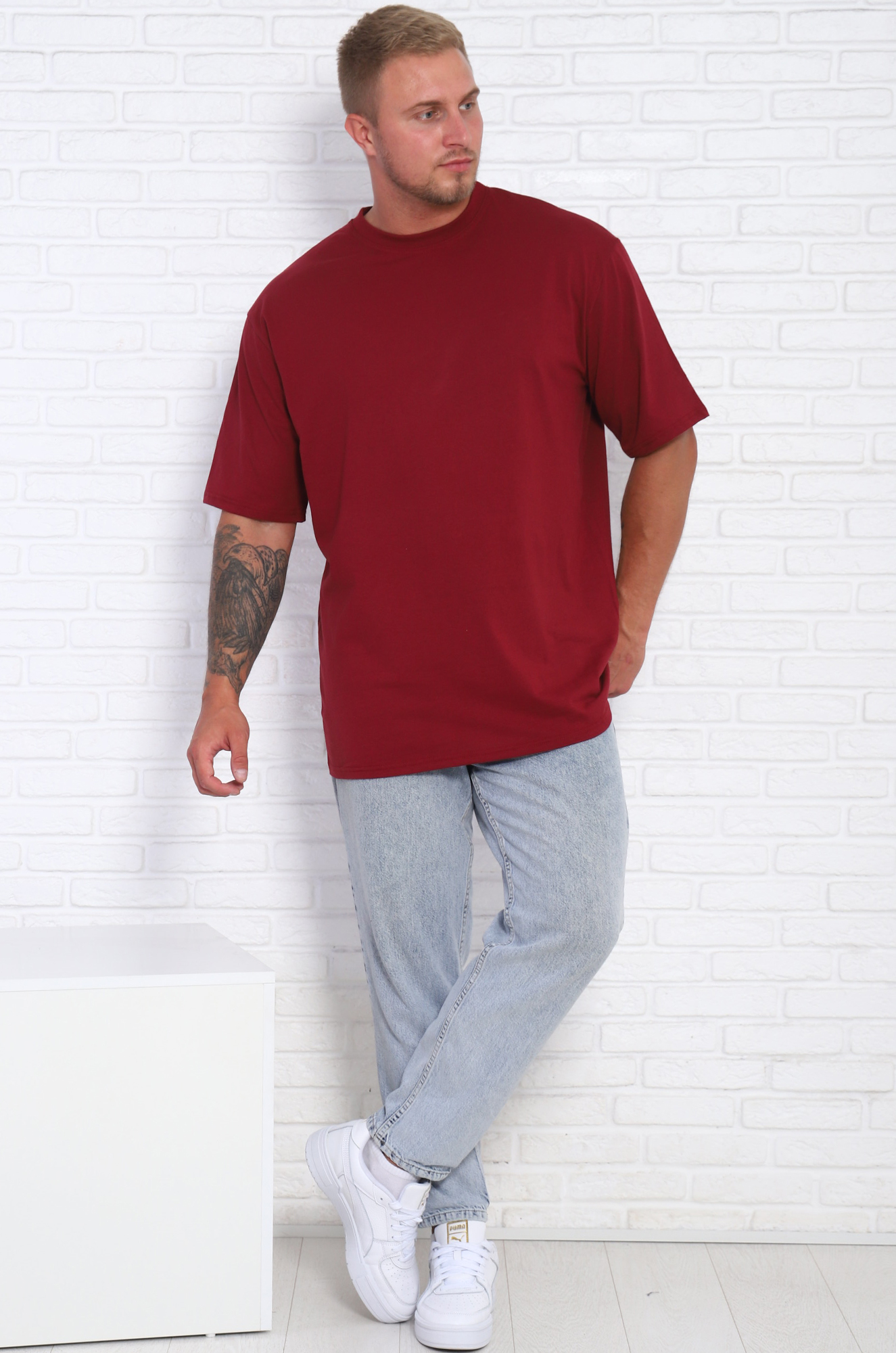 Футболка однотонная, 5xl (бордовый)