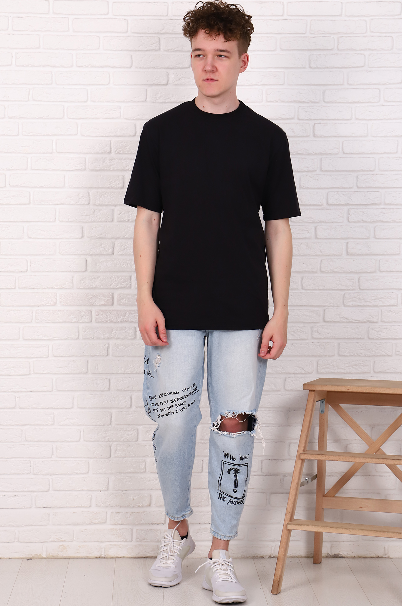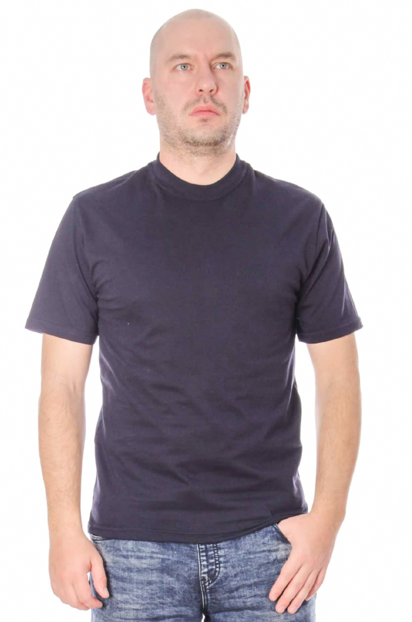 Футболка мужская однотонная, классический (прямой) покрой, горловина изделия обработана рибаной, модель имеет разные расцветки. В изготовлении футболок, используется трикотажное кулирное полотно, состоящее из 100% хлопка, плотностью 150-160  г/м2.