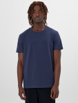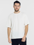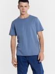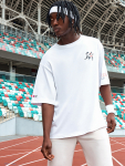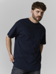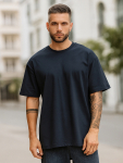 Синяя мужская футболка свободного кроя — это практичная и удобная основа для повседневного образа. Её оверсайз силуэт с круглой горловиной, спущенной линией плеча и широкими рукавами до локтя создаёт ощущение расслабленности и не стесняет движений.