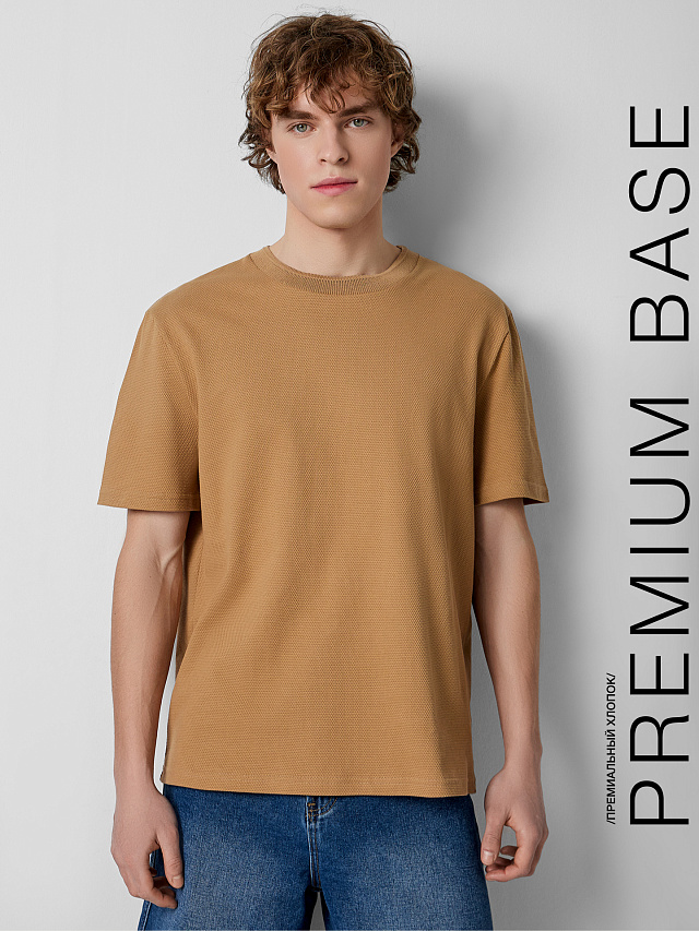Коричневая футболка свободного силуэта из линейки Premium Base — вещь, в которой привычная база становится интереснее за счёт фактуры и внимания к деталям. Прямой свободный крой, короткие рукава и классическая форма делают её универсальной для повседневной носки, а коричневый цвет легко вписывается в любой гардероб.
