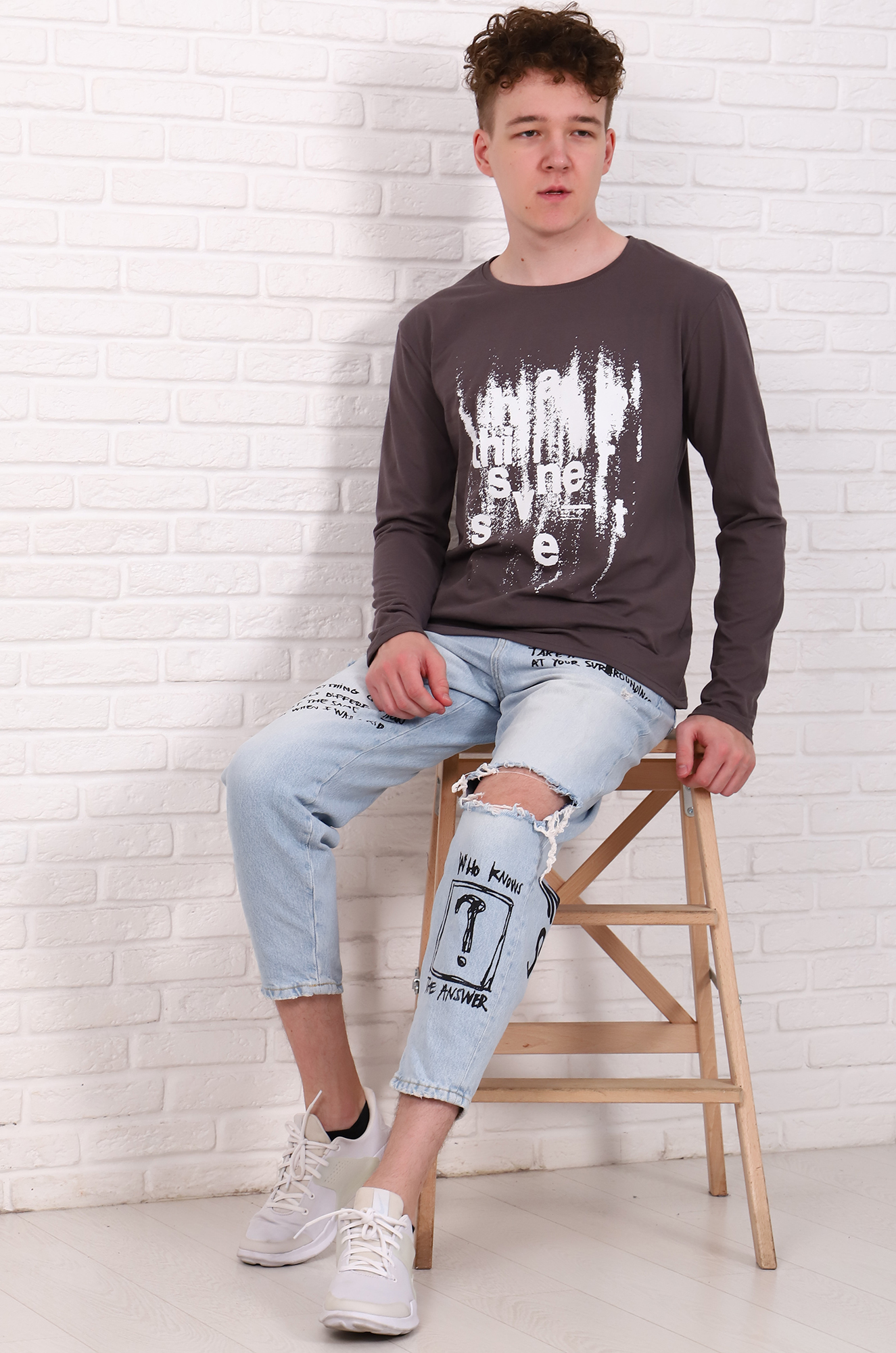 Мужской лонгслив - хлопковая футболка с длинным рукавом - идеальный вариант на прохладную погоду. Модель прямого крого, рукав втачной. Стильный печатный принт на полочке.