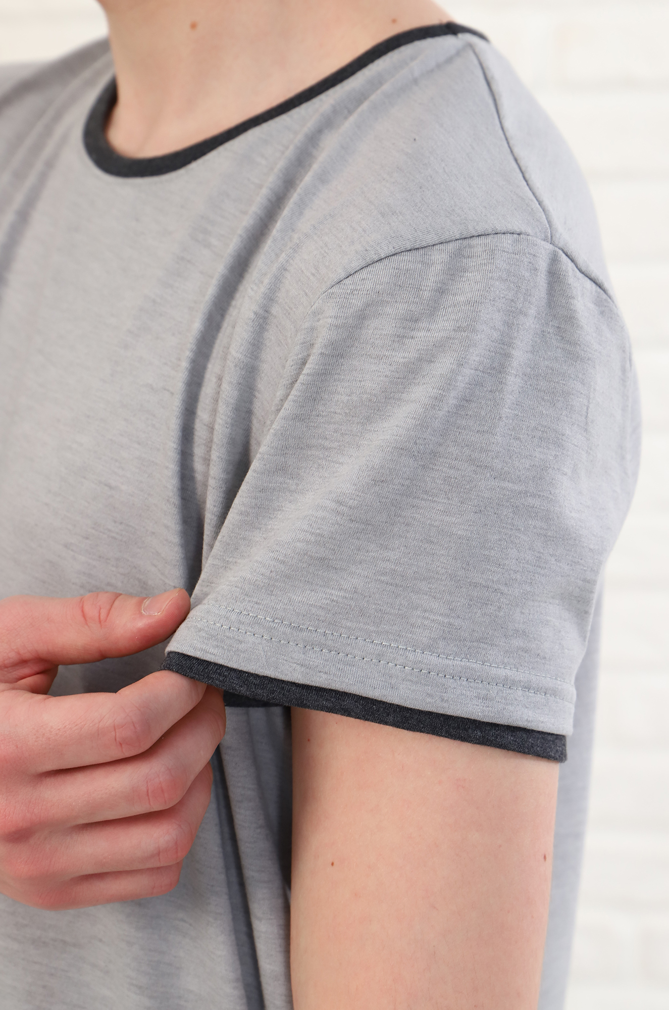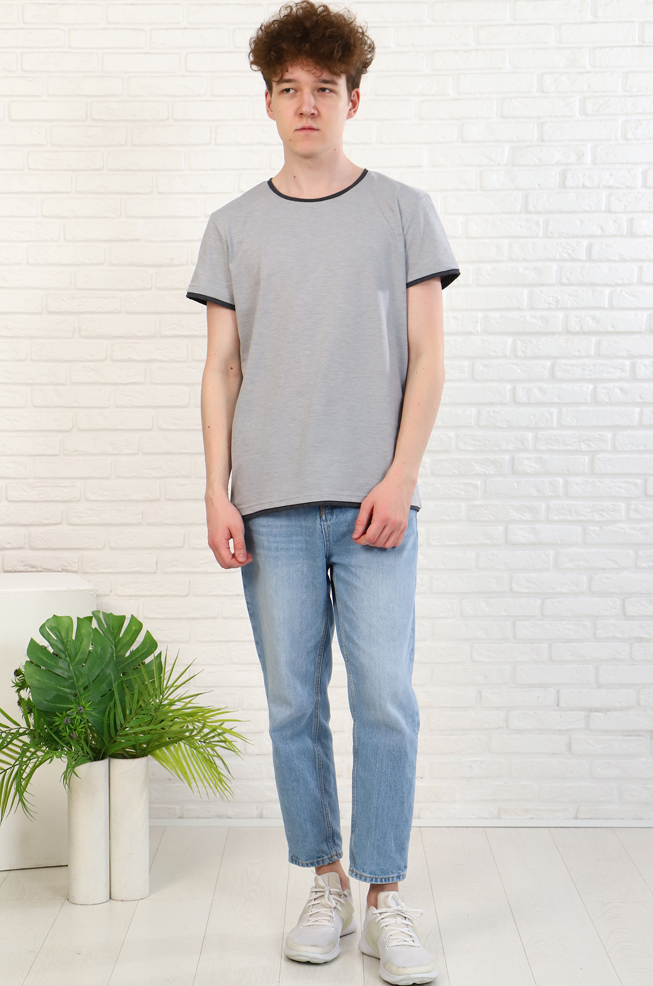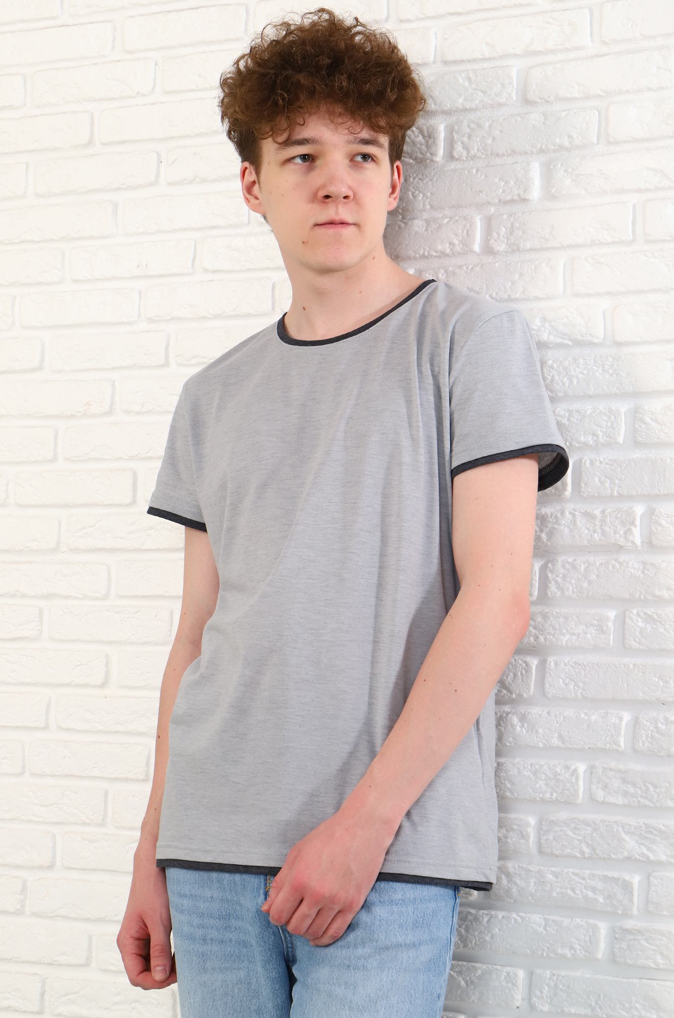 Мужская однотонная футболка прямого кроя, рукав втачной. Модель смотрится стильно за счёт оригинального контастного оформления горловины, по низу и на рукавах. Отличный вариант на каждый день!