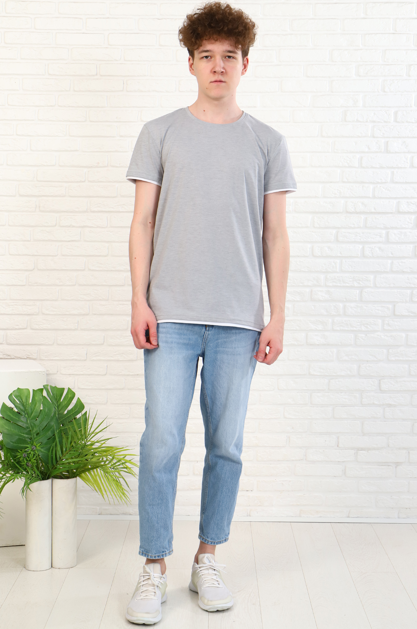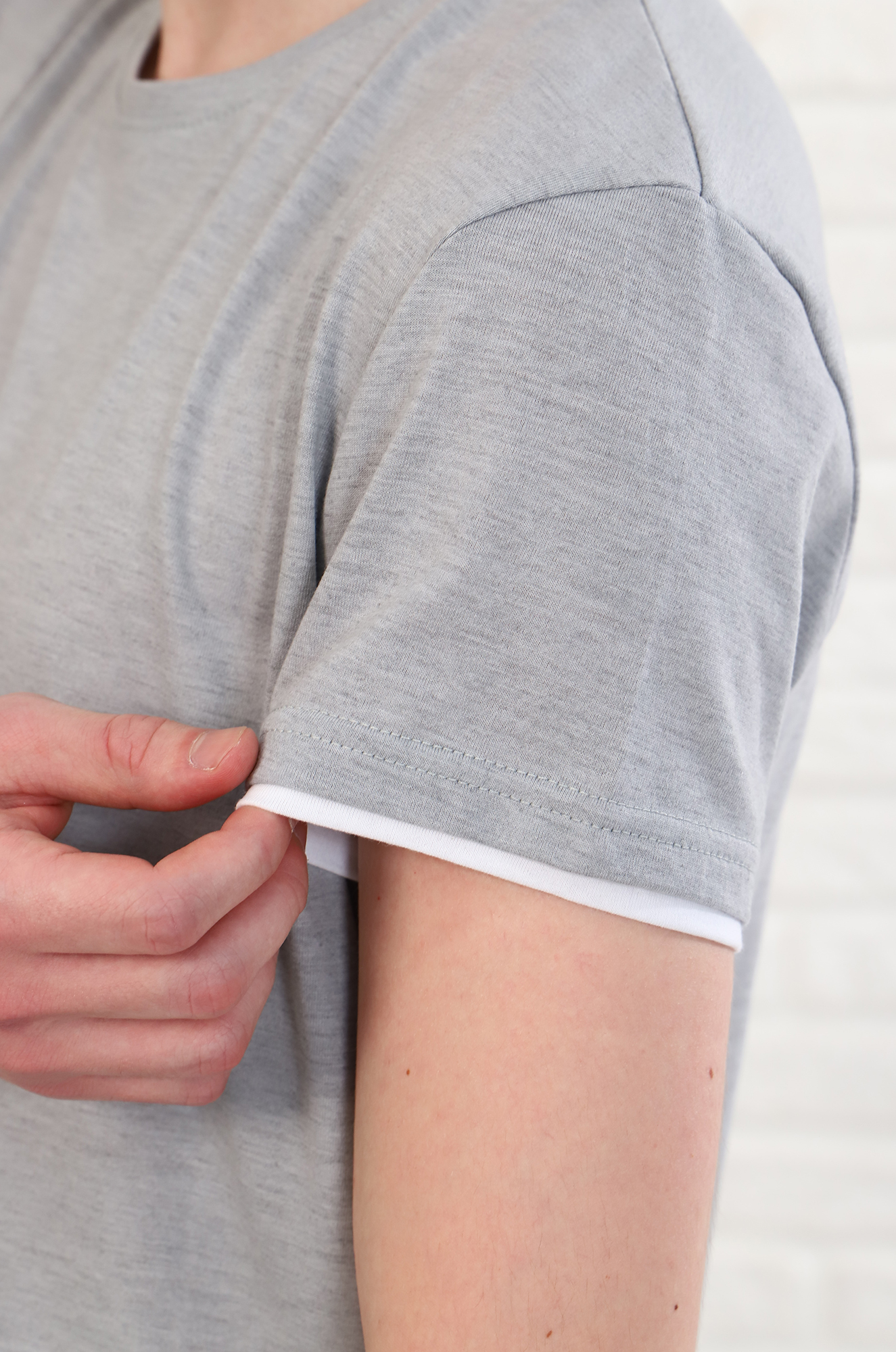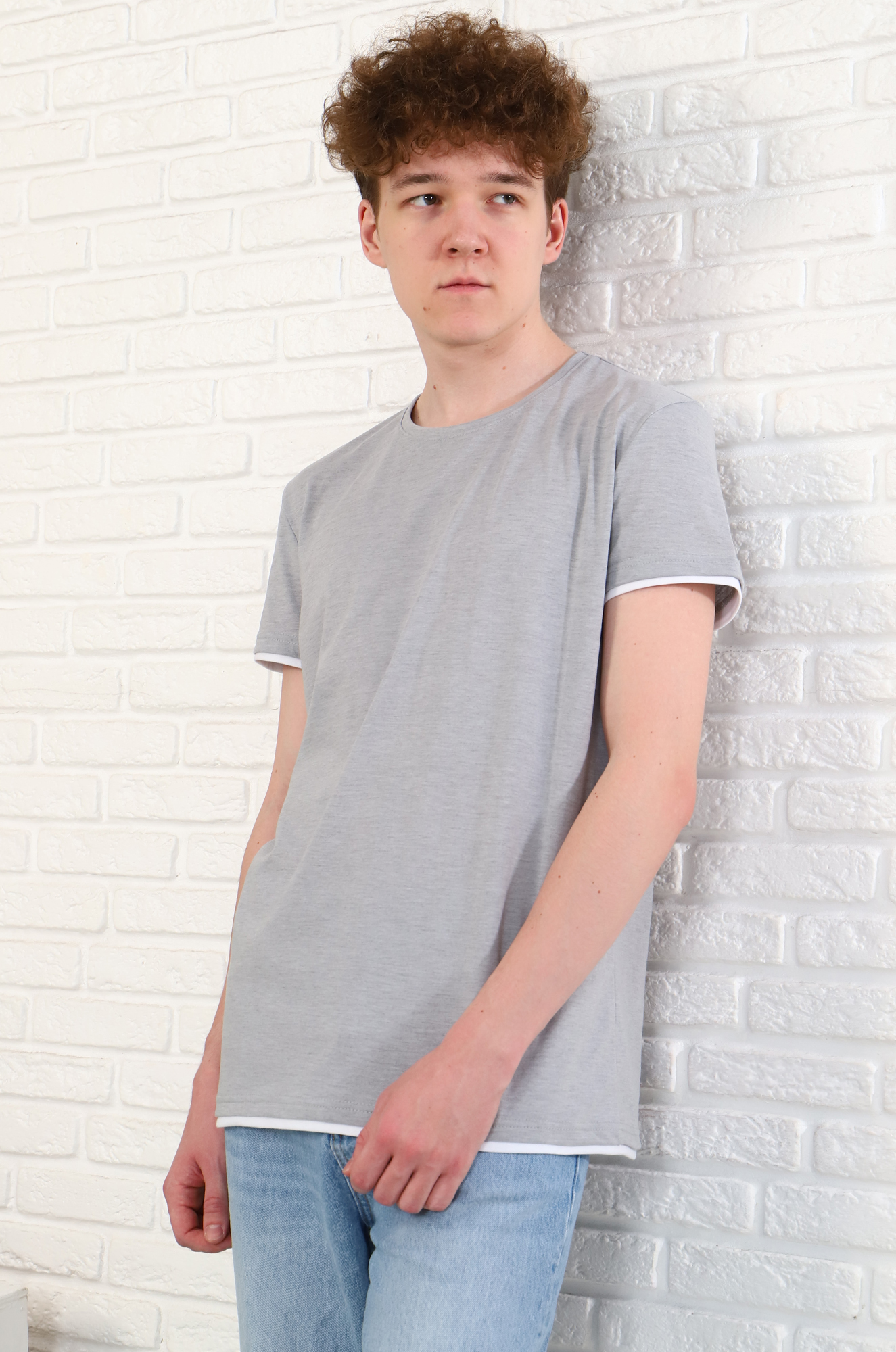 Мужская однотонная футболка прямого кроя, рукав втачной. Модель смотрится стильно за счёт оригинального контастного оформления по низу и на рукавах. Отличный вариант на каждый день!