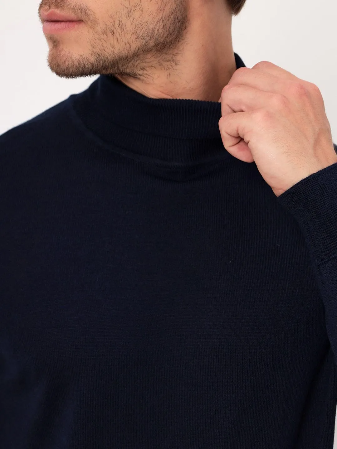 Цвет: Синий Рисунок: Трикотаж одн..показатьотонный Состав: 80% шерсть мериноса 20% акрил Модель: Классическая Ворот: Гольф Караман: отсутствует Силуэт: Прямой силуэт / Сlassic fitотонный