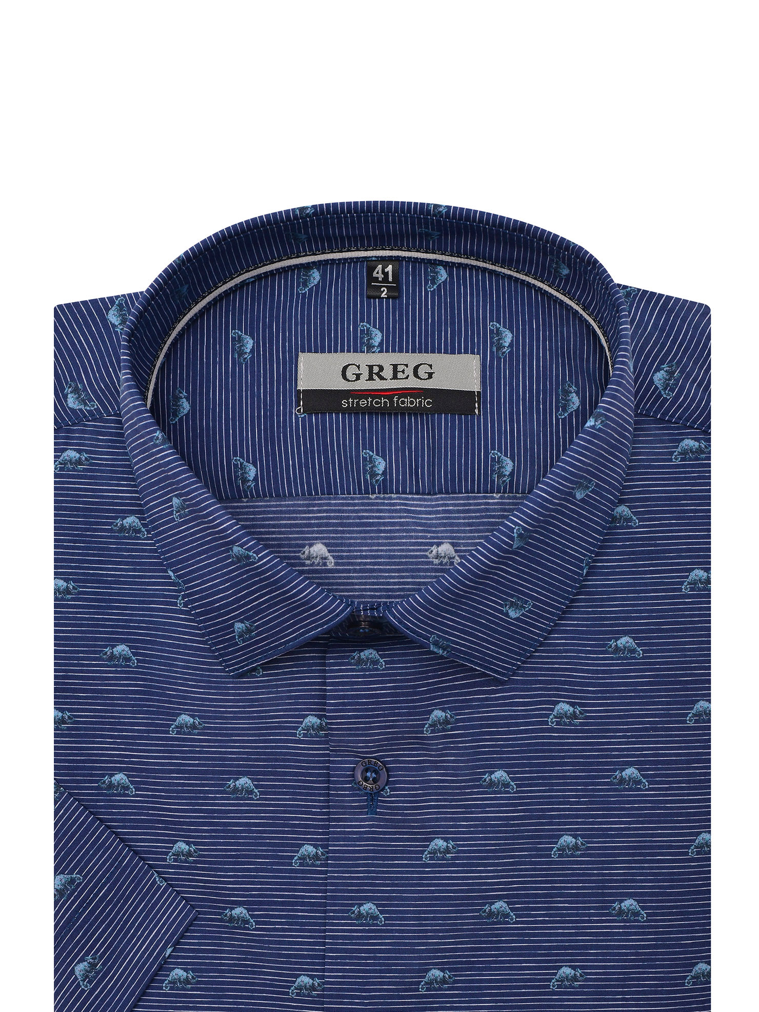 Сорочка мужская короткий рукав GREG 223/207/2832/ZN/1p STRETCH