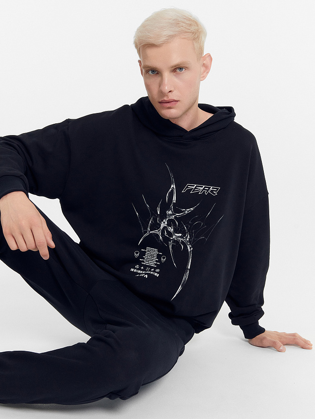 Худи мужское черное с печатью