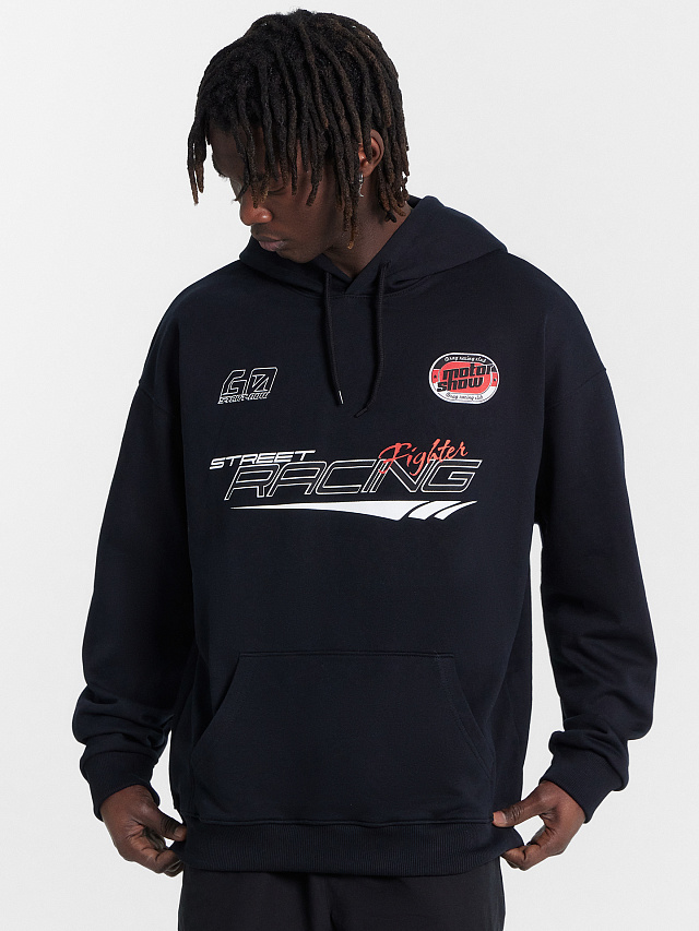 Худи мужское черное с принтом "Street racing"