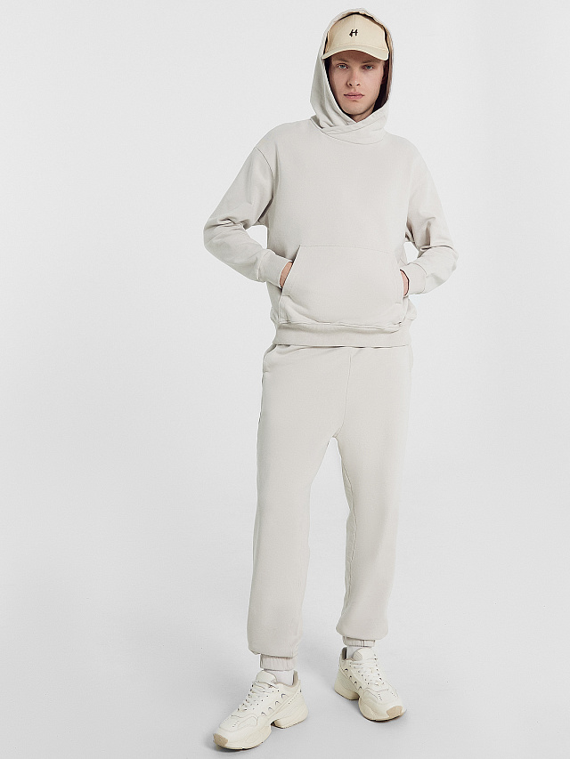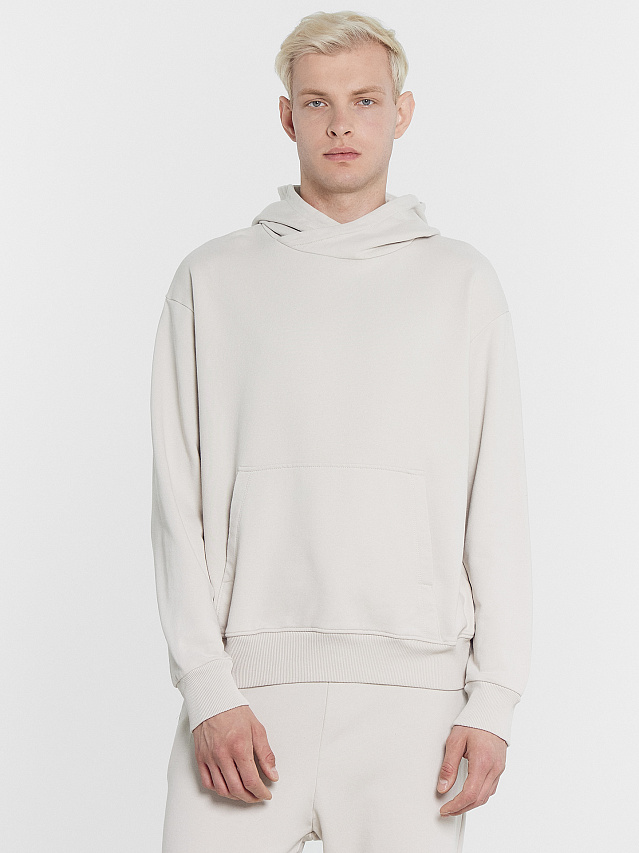 Мужское худи из трикотажного футера с теплым подчесом. Удобный карман-кенгуру, круглая горловина с капюшоном, длинные рукава на манжетах, спущенная линия плеча, пояс из рибаны – это худи удачно сочетает в себе комфорт, актуальный дизайн и качество!