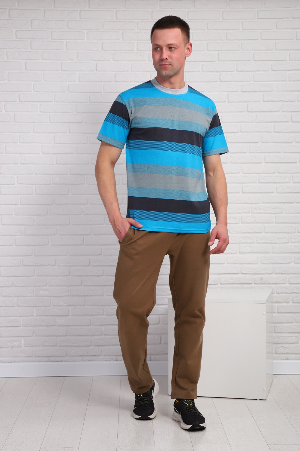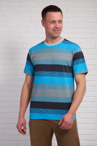 Мужская футболка в полоску, короткий рукав, с круглой горловиной. 100% хлопок. , Цвет: разноцветные; Материал: кулирка;кулирка; Состав: 100% хлопок.