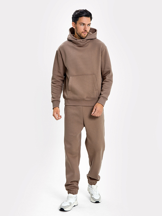 Комплект выполнен из трикотажного полотна футер. Анорак прямого силуэта, перед и спинка цельнокроеные. Круглый вырез горловины, с капюшоном.