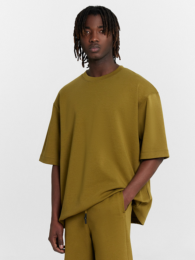 Мужской комплект станет отличным выбором для комфортного и стильного повседневного образа. Футболка прямого свободного кроя с круглой горловиной и слегка спущенной линией плеча добавляет расслабленный вид. Короткие рукава и обработка нижних срезов швом вподгибку обеспечивают аккуратный и завершенный вид. Шорты прямого свободного кроя длиной до колен создают удобство в движении, а эластичный пояс на кулиске позволяет подогнать посадку под индивидуальные предпочтения. Боковые карманы добавляют практичности и удобства. Изделие выполнено из интерлока — двойного трикотажа, известного своей прочностью, мягкостью и приятной текстурой. Он обладает высокой воздухопроницаемостью, эластичностью и долго сохраняет форму, не растягиваясь и не деформируясь. Этот материал обеспечивает комфорт в течение всего дня и идеально подходит для одежды, которая требует легкости и долговечности. Такой комплект идеально подходит для отдыха дома, прогулок или занятий спортом, сочетая функциональность и стиль. Комфортный и универсальный выбор для любого дня.