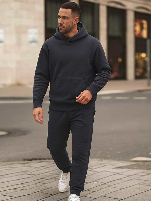 Стильный комплект мужской выполнен из трикотажного футера с подчесом. Анорак прямого силуэта, перед и спинка цельнокроеные. Круглый вырез горловины, с капюшоном. На передней детали настрочен карман-кенгуру. Рукава длинные втачные со спущенной линией плеча. По низу рукавов и анорака притачены манжеты и пояс из рибаны. Брюки свободного силуэта. Посадка средняя. Сидение немного спущено. В боковых швах выполнены функциональные карманы. Пояс отрезной с эластичной тесьмой. Спереди в поясе пробиты петли и протянут шнур. Комфортная и невероятно удобная модель для повседневной носки. Отличный вариант для демисезона. Материал изделия мягкий и приятный. Отлично держит форму и не деформируется. Широкий размерный и цветовой ряд. Рекомендуем эту модель для активных мужчин!