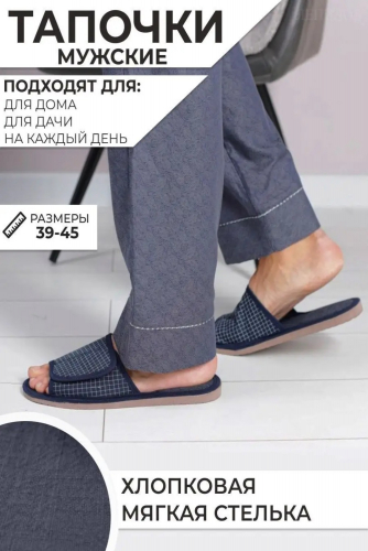 Легкие комнатные тапочки мужские от бренда Лепилов прекрасно подойдут для ежедневного ношения дома и на даче в любое время года. Их можно предложить своим гостям, или взять с собой на отдых, в дорогу. А как приятно самому после тяжелого рабочего дня переобуться в тапочки с комфортной посадкой по ноге! Тапочки с открытым мыском не натирают ноги. Верхняя часть домашних тапок выполнена из качественного текстиля, который легко пропускает воздух. В таких тапочках нога не потеет и не скользит. Они спасают от холодного и мокрого пола и подходят на любую полноту стопы. Стелька выполнена из качественной пробки, благодаря которой их очень комфортно носить как с носком, так и на босу ногу. Подошва изготовлена из ЭВА, это легкий, упругий, эластичный и износостойкий материал. Все швы качественно обработаны производителем. Классическая модель подойдет для носки в любое время года: в осенний, весенний и летний, в зимний период, будет удобна в качестве домашних комнатных, дачных или рабочих. Широкий размерный ряд позволяет найти свою пару удобной обуви каждому мужчине. Наслаждайтесь каждым моментом вместе с нами!