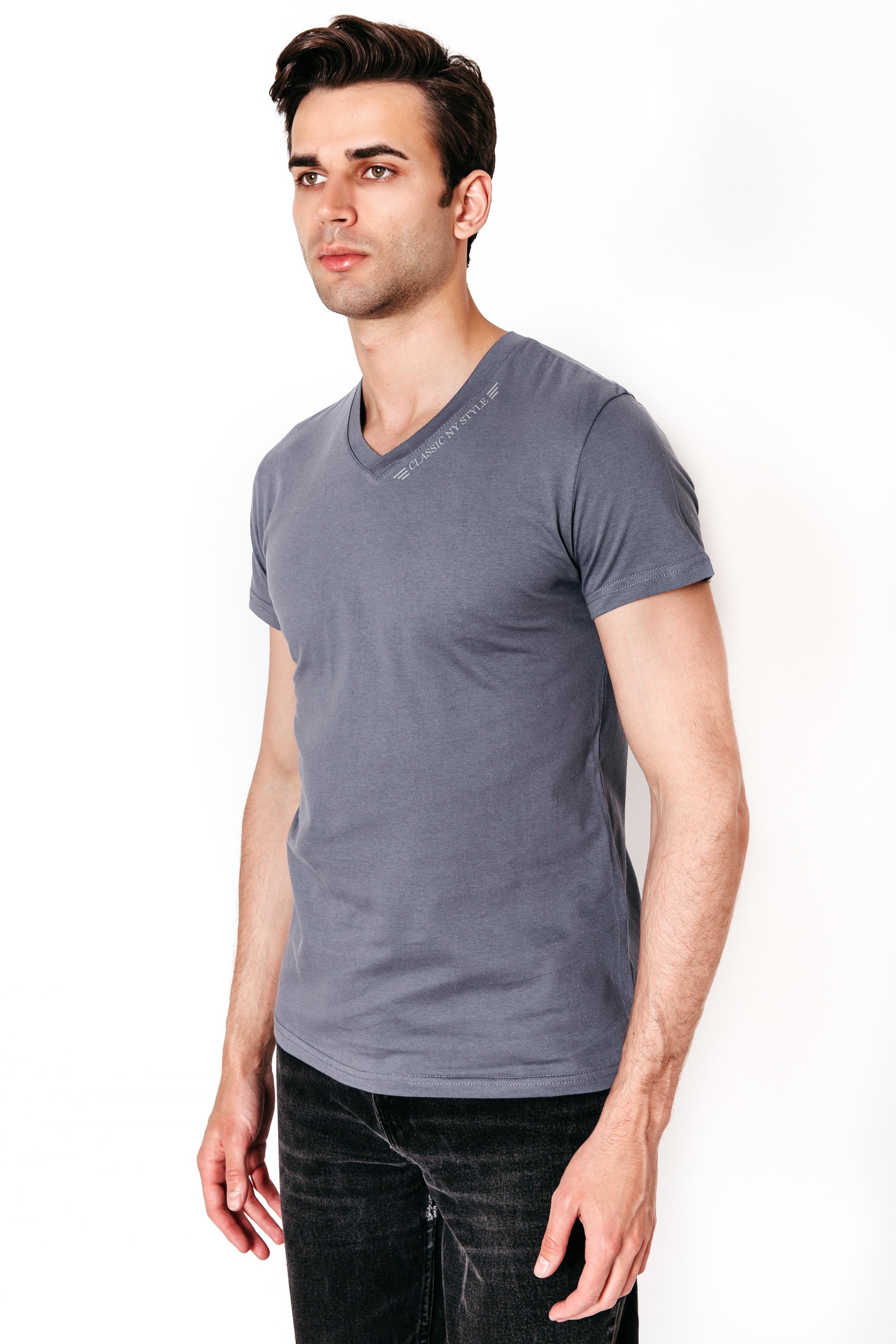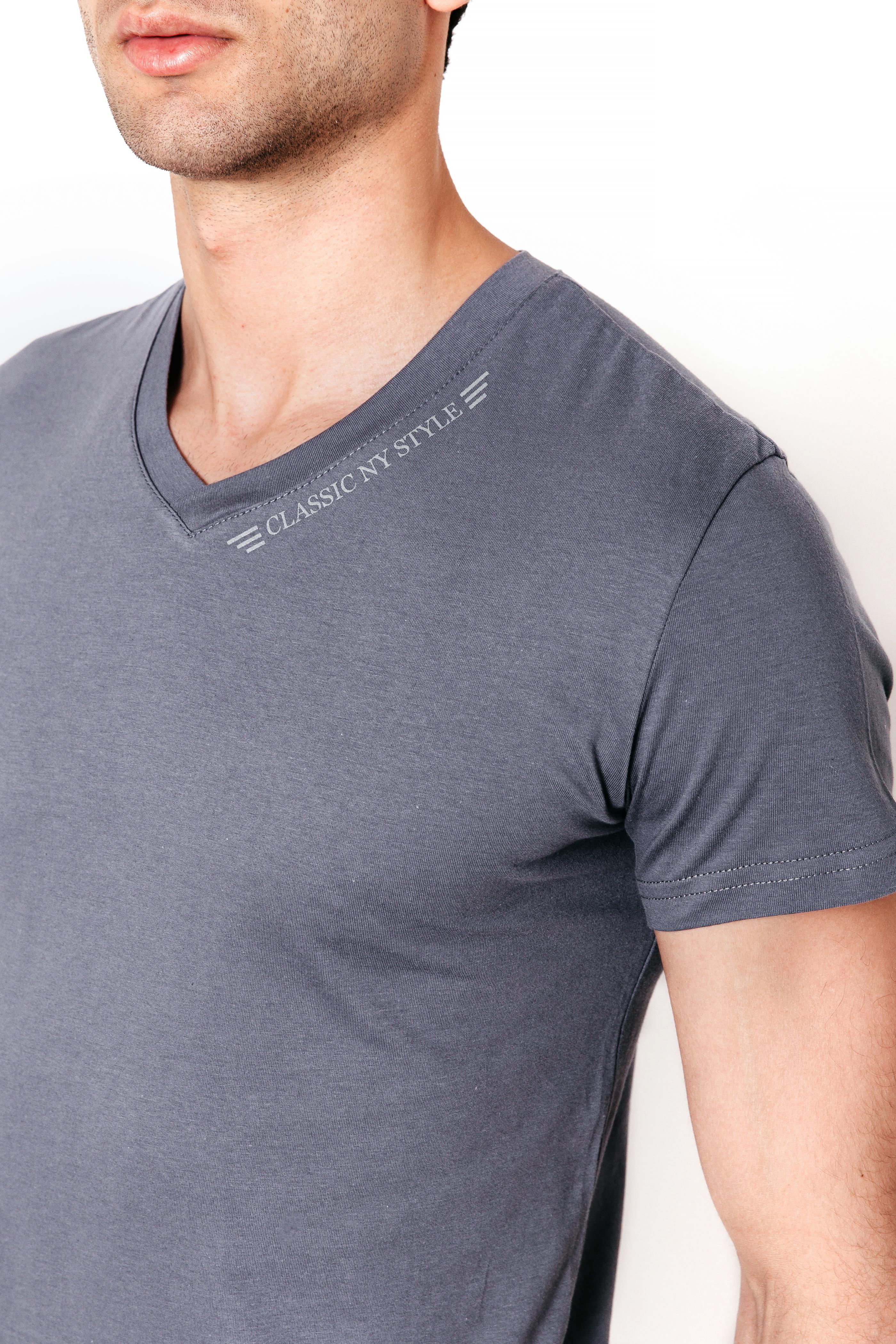 Удобная и комфортная футболка полуприлегающего кроя. Футболка с V – образным вырезом горловины и коротким рукавом