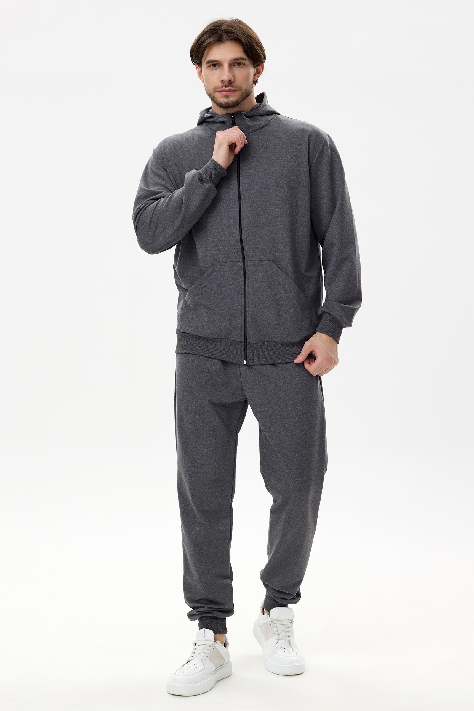 Спортивный мужской костюм Эдворд в однотонном темно-сером цвете. Состоит из худи на молнии с капюшоном и брюк с карманами на резинке. Отлично подходит как для повседневной носки, так и для занятий спортом. Универсальный и модный мужской костюм станет неотъемлемой частью гардероба. Сочетается с любой спортивной обувью, возможно комбинировать с другой одеждой.