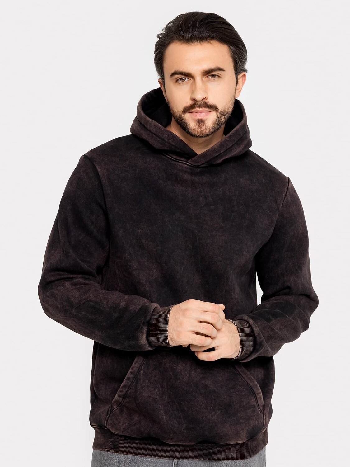 Мужское худи прямого силуэта, слегка посаженное на пояс. Выполнено из трикотажного футера с теплым подчесом. Горловина круглая, с уютным капюшоном, который спереди идет внахлест. Рукава длинные, на манжетах. Есть вместительный карман-кенгуру. Слегка спущенная линия плеча и немного углубленная пройма дарят свободу движений. Отличное худи для стильных образов!