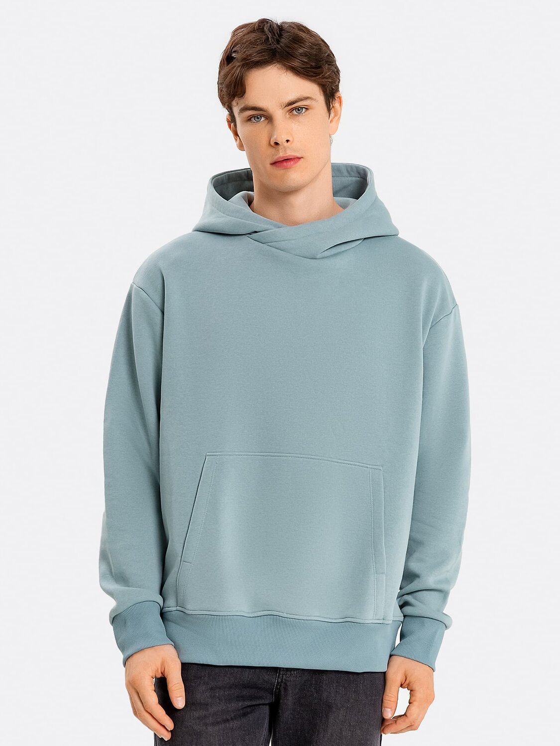 Мужское худи из трикотажного футера с теплым подчесом. Удобный карман-кенгуру, круглая горловина с капюшоном, длинные рукава на манжетах, спущенная линия плеча, пояс из рибаны – это худи удачно сочетает в себе комфорт, актуальный дизайн и качество!