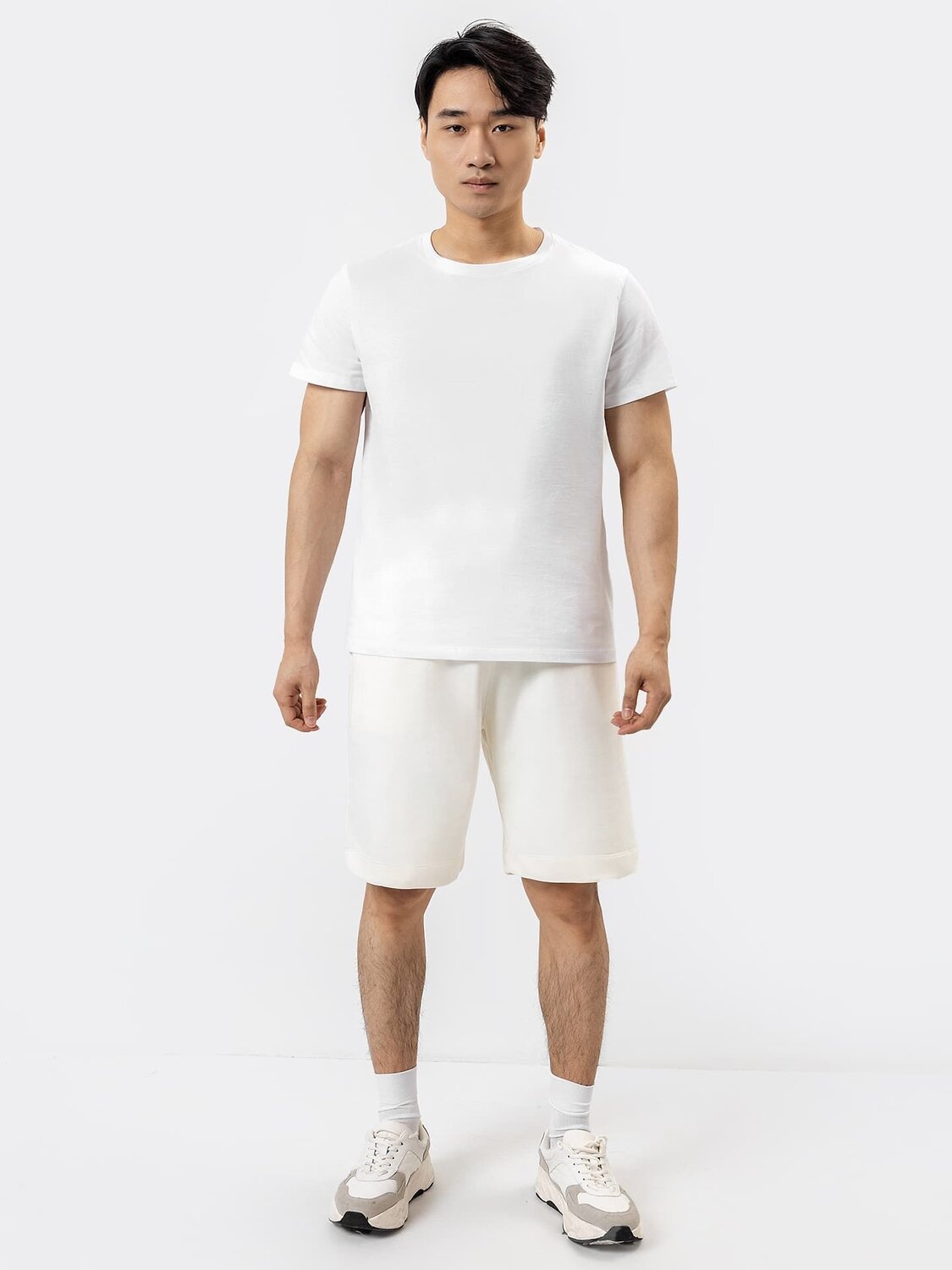 Шорты свободного силуэта из футера – мягкого, гигроскопичного и неприхотливого трикотажного полотна. Футер тонкий, без подчеса. Длина до колена. Боковые карманы добавляют практичности. Регулировать ширину по талии можно с помощью шнурка-завязки.