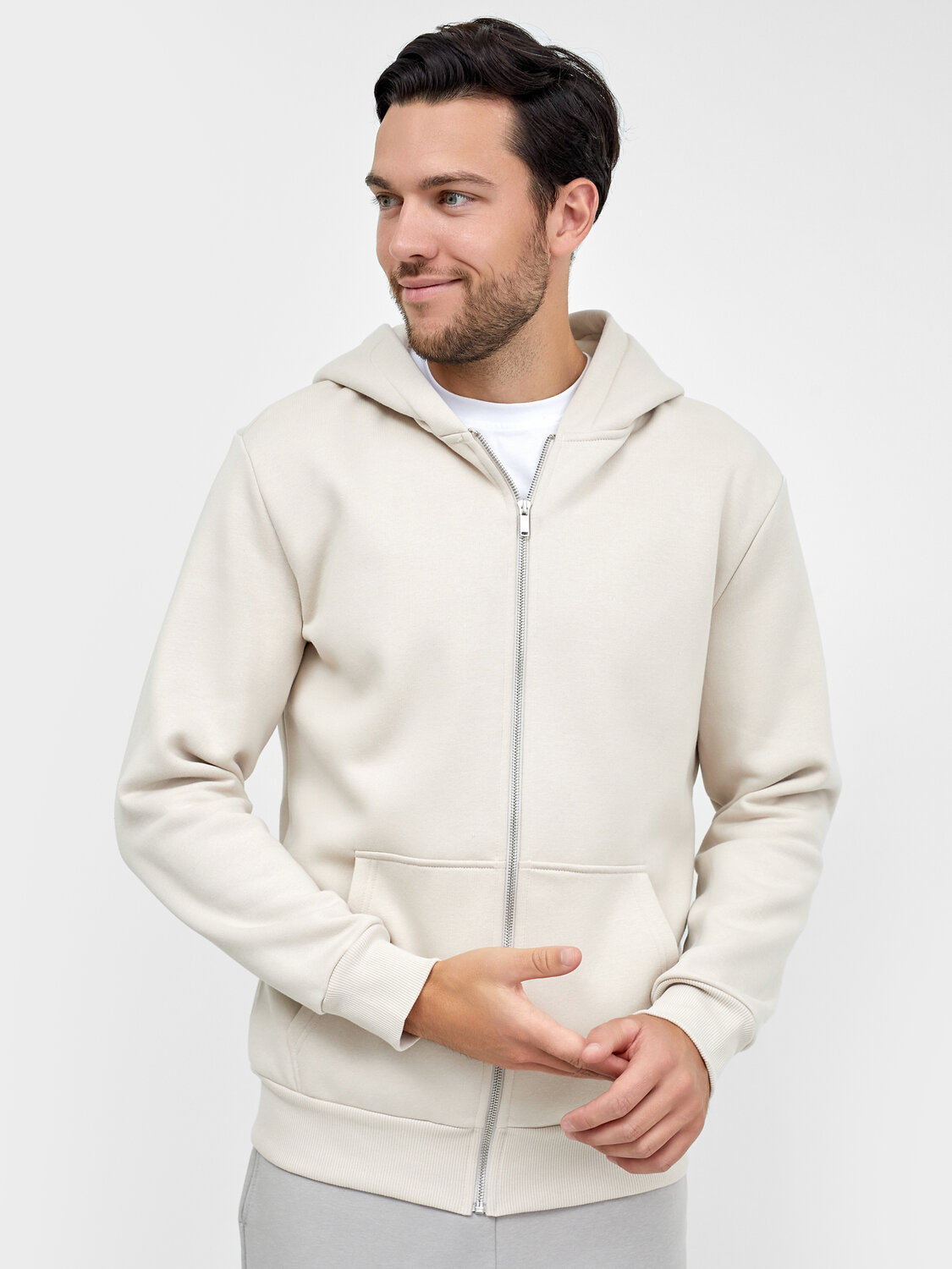 Стильный мужской жакет из трикотажного футера с подчесом. Удобный карман-кенгуру, спущенная линия плеча и углубленная пройма, длинные рукава, круглая горловина с капюшоном, центральная застежка на молнию – рекомендуем!