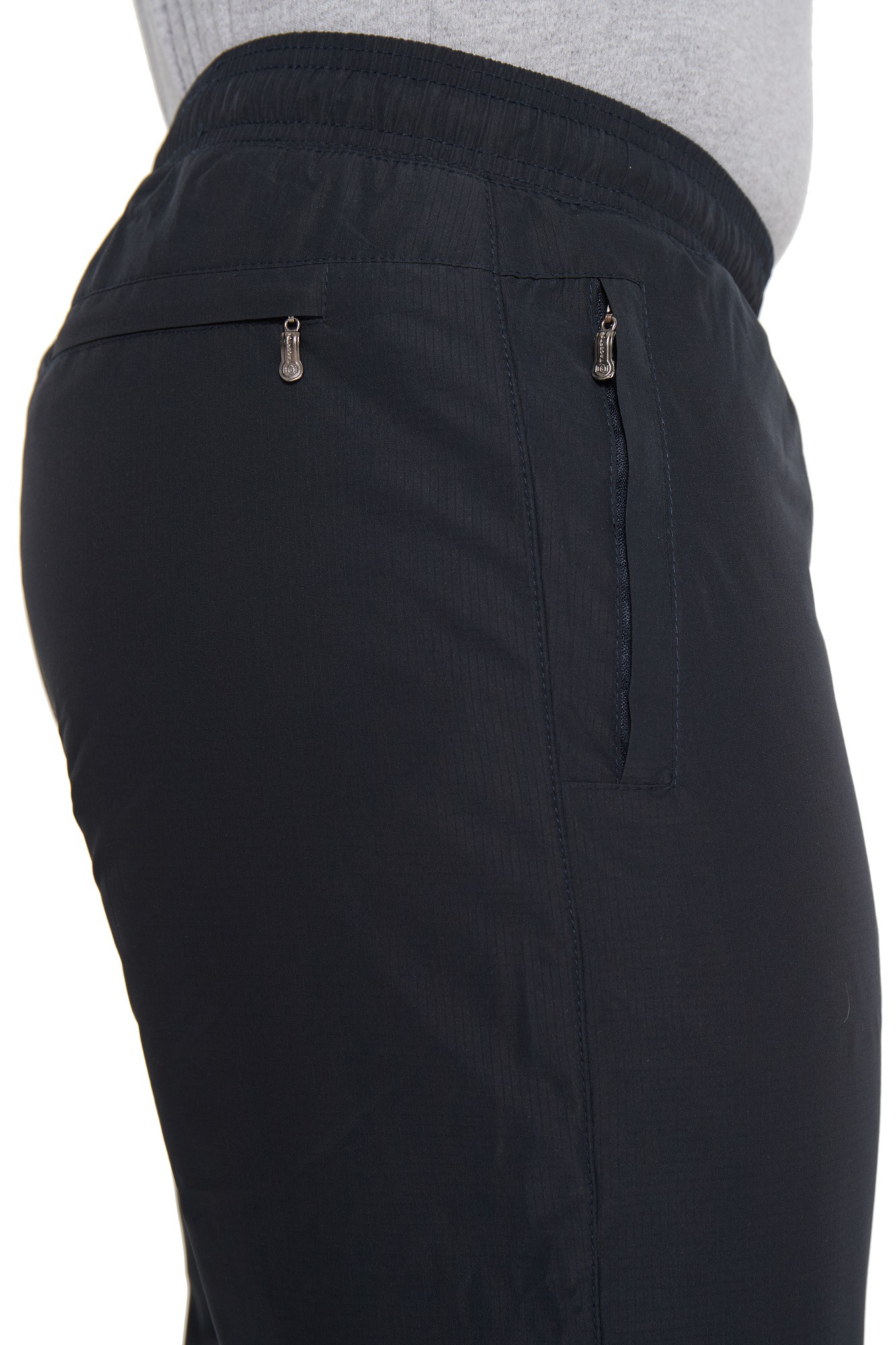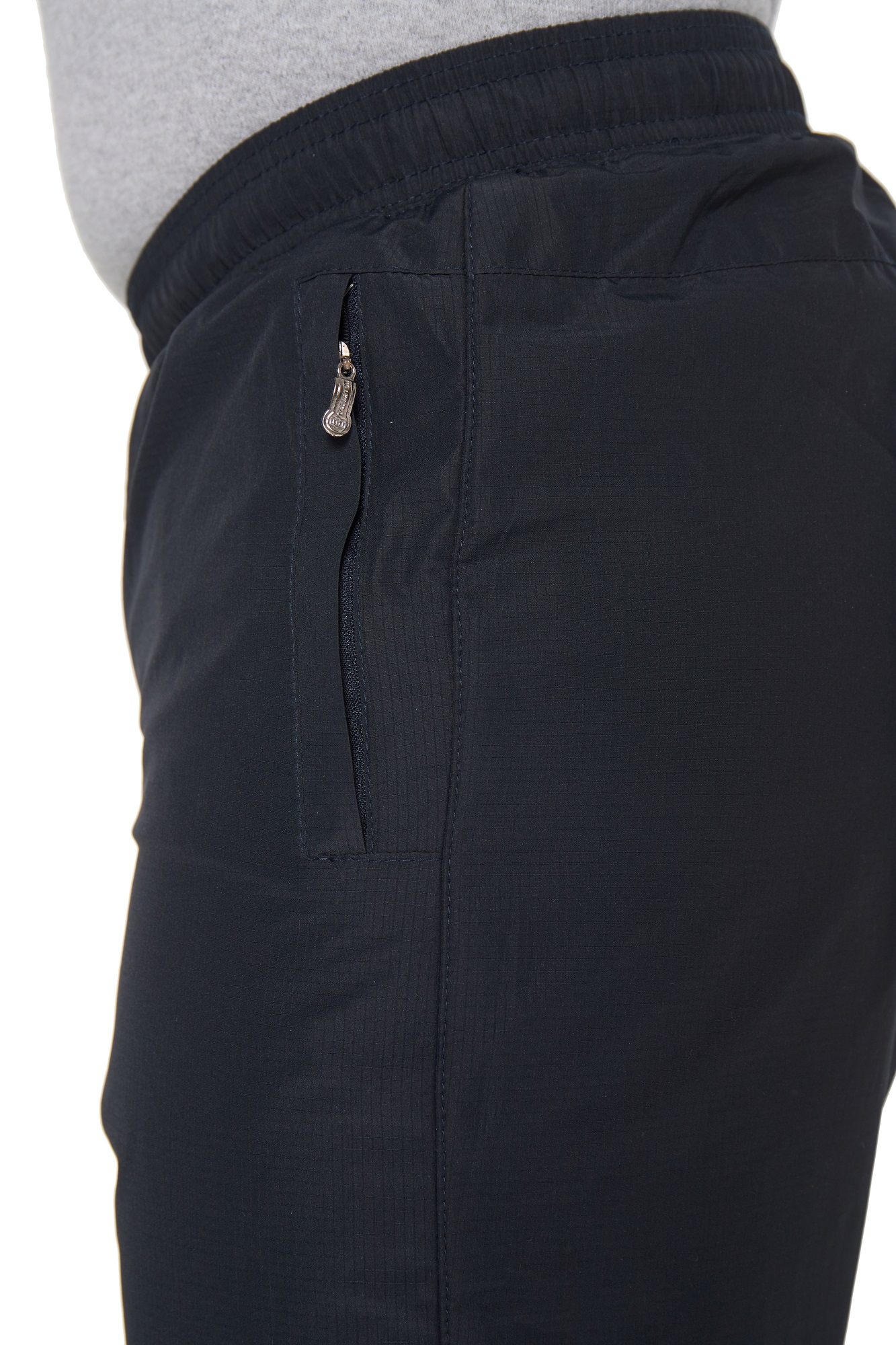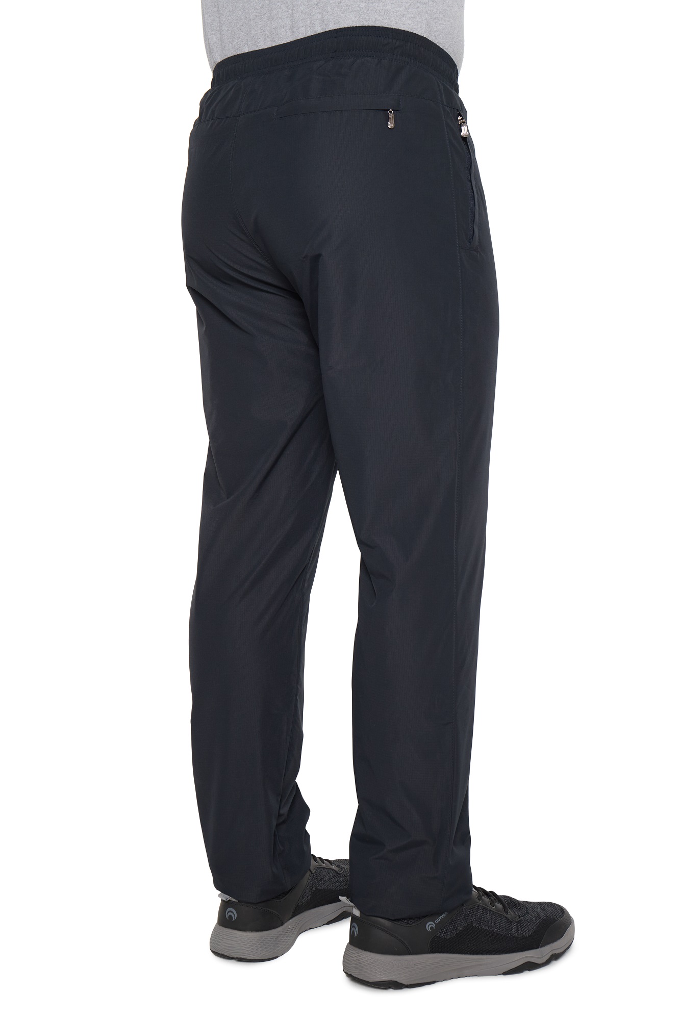 Зимние брюки с поясом на резинке. С внутренней стороны пояс фиксируется шнурком. Наружная ткань мягкая, приятная на ощупь, имеет в своём составе армирующие нити, придающими ей дополнительную прочность и создают фактурный рисунок в виде мелких квадратов. Не грубеет на морозе. Ламинированное покрытие на внутренней стороне ткани обеспечивает защиту от ветра и влаги. Утепляющая подкладка из плотного флиса на трикотажной основе не вытягивается, держит форму, а благодаря антипиллинговой обработке не скатывается даже после многочисленных стирок. Брючины немного заужены книзу. Вертикальные передние карманы на молниях под листочками. Сзади кокетка, под которой расположен горизонтальный карман, фиксирующийся молнией.